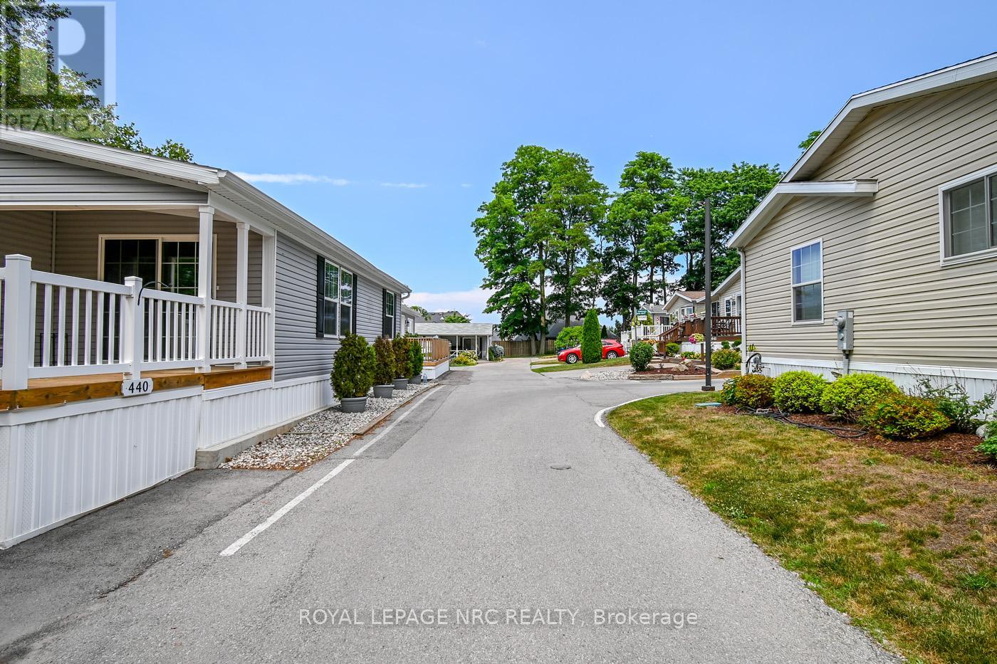 Ready to make life really easy and simple, where you'll have a clear mind to have time to spend with family and friends? Creekside Estates is the epitome of independent retirement living for those who are 55+ and actively living their best years! Located in hands down the most gorgeous, sought after location in the entire Niagara Region, Niagara on the Lake - in the adorable community of St. David's. Retirement doesn't get much better than this. You literally just move in as THIS UNIT IS ONLY 5 YEARS OLD! It is absolutely perfect for those looking for a place to live safely in a community that truly cares about each other. *SNOWBIRDS, just lock the door & off you go for the winter. You can rest assured your home will be looked after by your new community. You'll make amazing new friendships here as well. Creekside is renowned for it's vibrant social activities & very welcoming atmosphere. Your life here will include a range of community activities to keep you as social & active as you want at the exclusive community center which itself includes a lending library, a full kitchen, pool table and plenty of hang out room. The property also has a tuck shop where residents donate items to be sold with funds being used for social activities. There is also the exclusive outdoor pool! Everything on the entire property is well kept and pride of ownership is evident right from the road. Unit #440 itself is tucked in a few streets up so there's no road noise. The front entry stairs were specifically built to be lower rise for ease of use, and are wider side to side, just in case you need a hand. There is also a ramp to the back entrance for added convenience when needed. ALL APPLIANCES ARE INCLUDED & ARE ONLY 5 YEARS OLD: stove, fridge, dishwasher, washer/dryer, the gas bbq-appox value of $3700!! Plus, a newer sofa bed which is perfect for company! This unit comes with $30,000 in share too making your monthly lot fee only $245! Units without shares have much higher lot fees! (id:60490)
